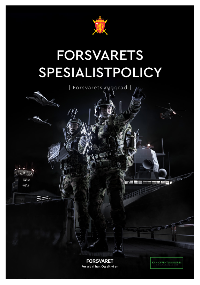 Forsvaret har innført en policy som skal utvikle et mer enhetlig og slagkraftig spesialistkorps. Dokumentet gir tydelig retning for rolle, ansvar og karriere for spesialistene.